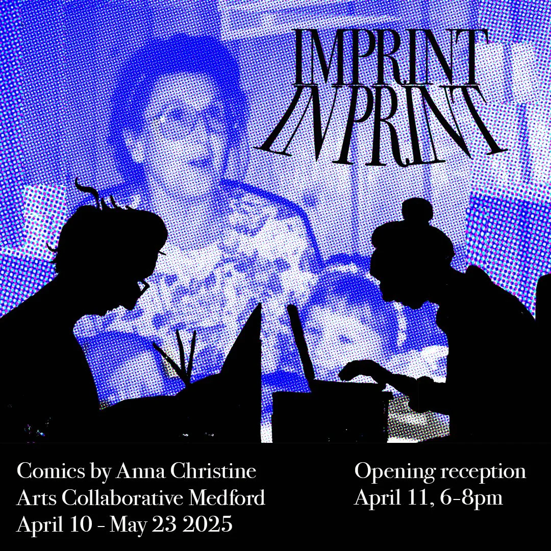 Imprint In Print is showcase of Medford based cartoonist Anna Christine. On display will be her autobiographical comics that explore patterns and repetition of experience across generations and within families.